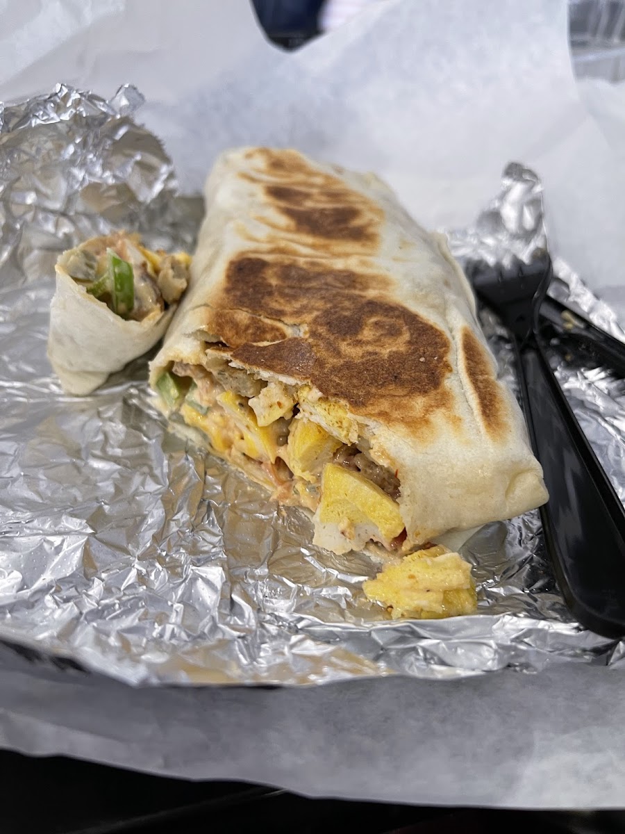 Got the winona burrito with bacon and sasuage. Everything I want in a breakfast burrito. 10/10 Also it was enough for two meals, so great portion sizes.